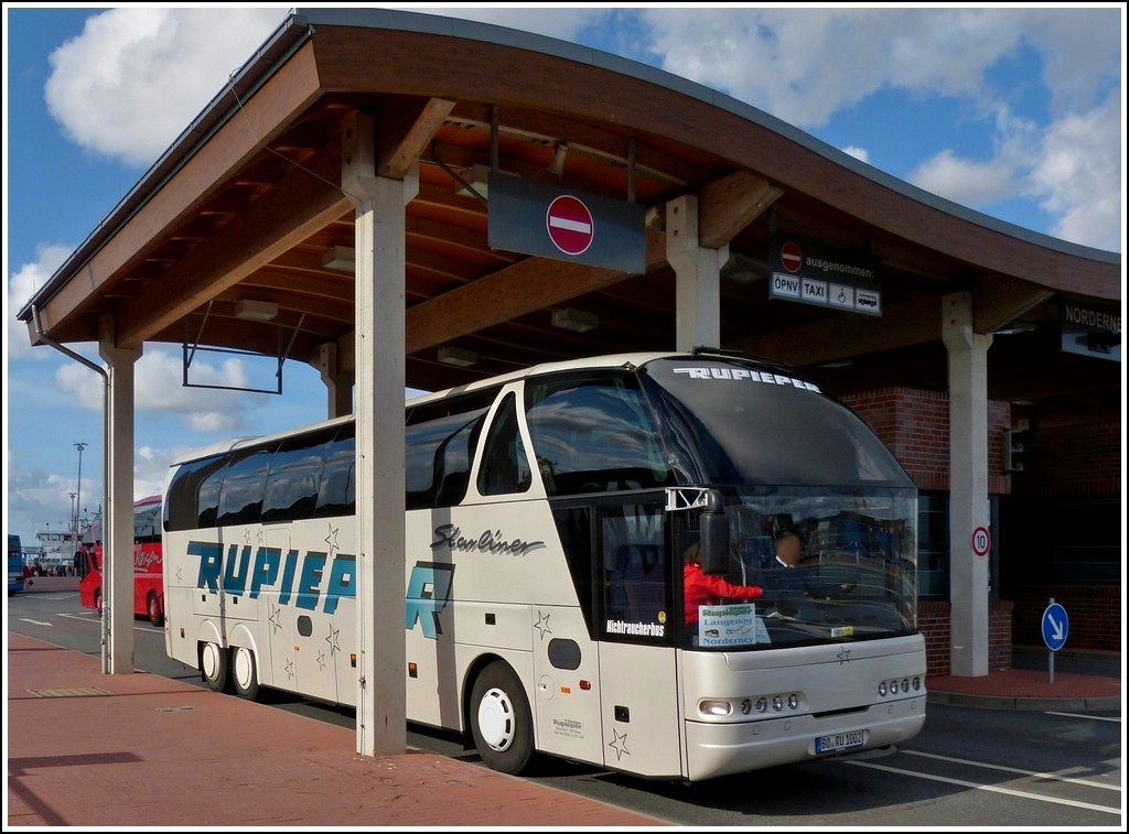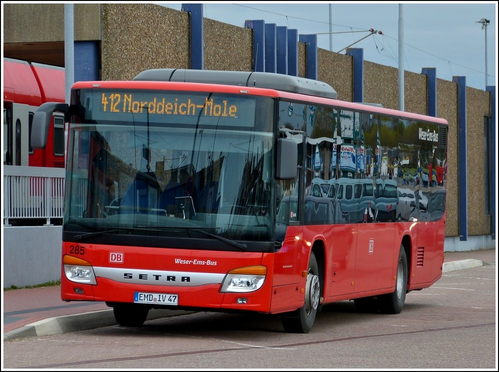 Nachdem die Fahrgäste von der Fähre aus Norderney kommend in den Bus gestiegen sind kann dieser die Rundreise durch Friesland fortsetzen. Norddeich-Mole 05.05.2012 De Rond Hans und Jeanny