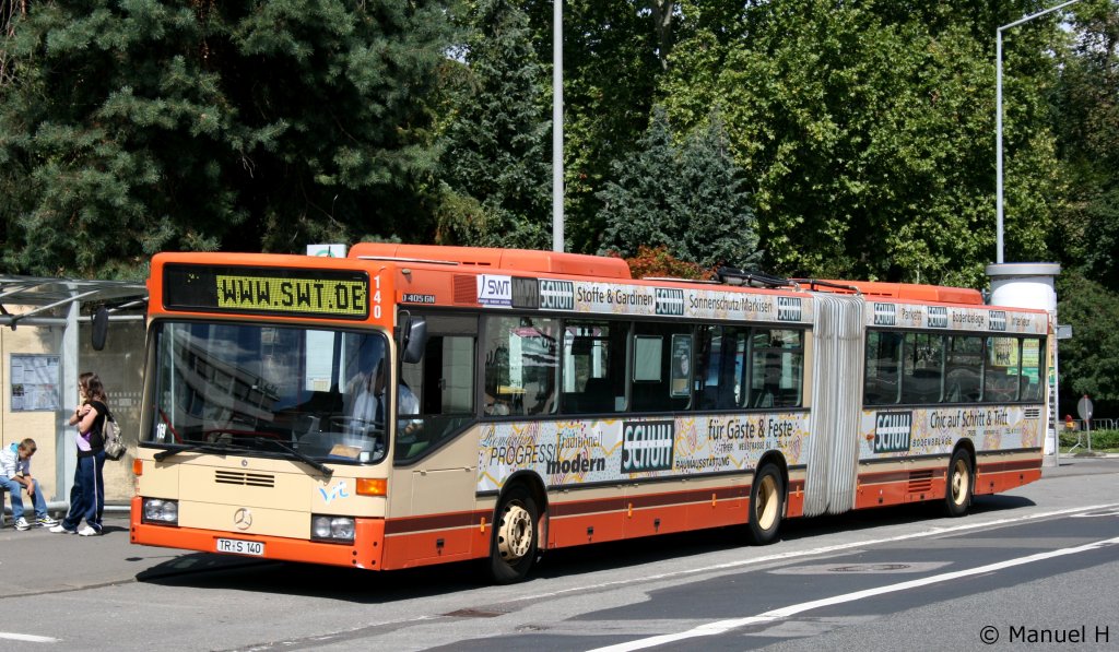 SWT 485 (TR S 485) trägt SWT Eigenwerbung. Aufgenommen an der Porta Nigra in Trier, 19.8.2010.