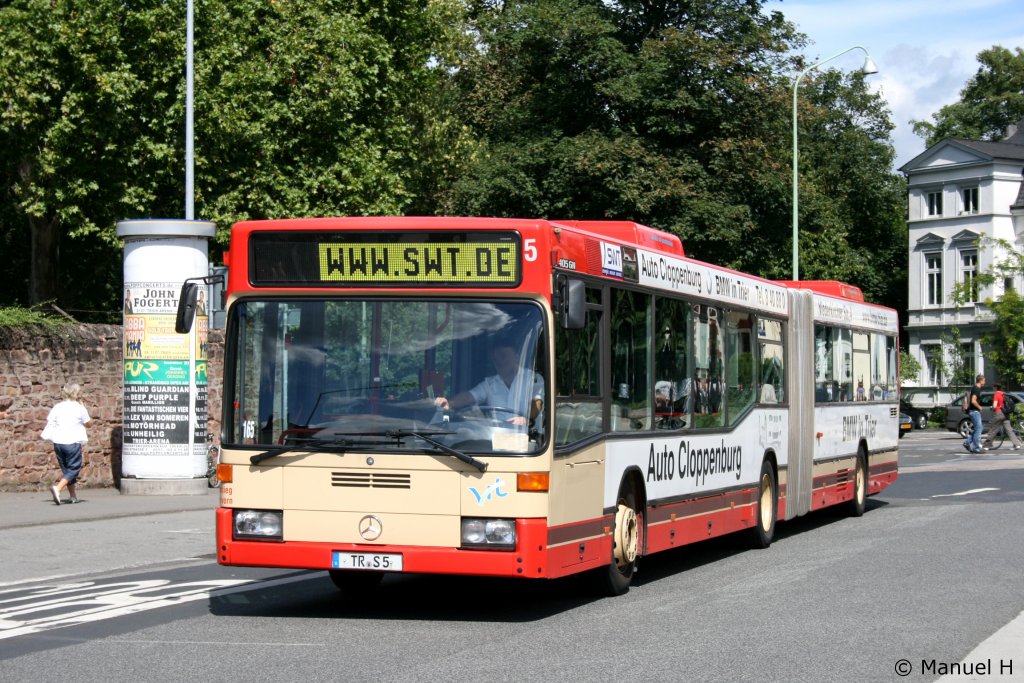 SWT 89 (TR S 89) trägt SWT Eigenwerbung. Aufgenommen an der Porta Nigra in Trier, 19.8.2010.