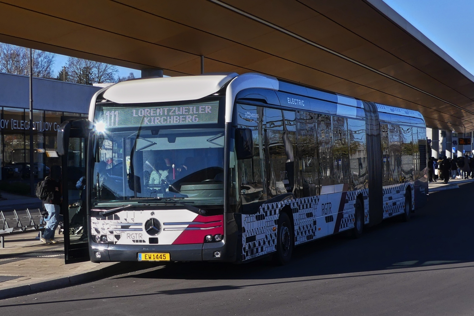 Mercedes eCitaro 8107, auf der Linie 33,  verlässt am 01.12.2025 die Haltestelle Schützenhaus. Aufnahme Basel.