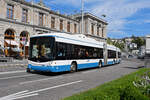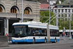 Hess Doppelgelenk Trolleybus 69, auf der Linie 31, fährt am 22.08.2024 zur Haltestelle beim Bahnhofplatz in Zürich.