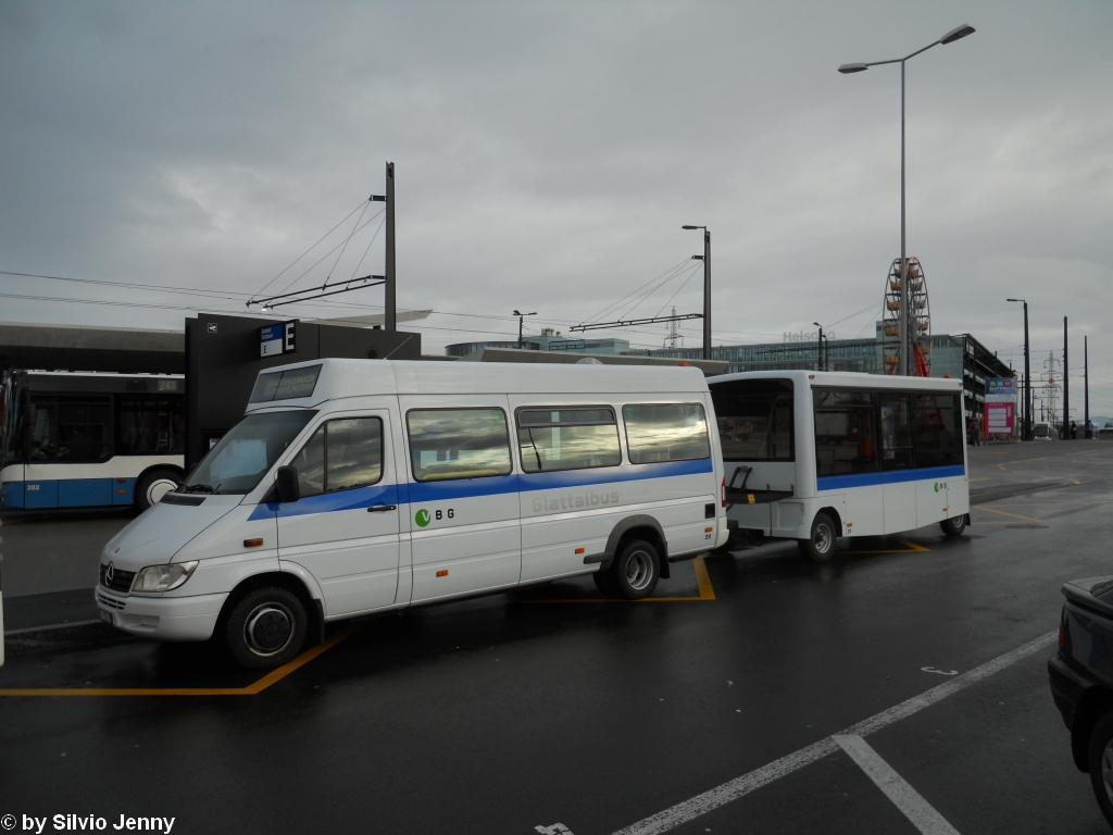 Eine Spezialität bei der VBG ist die Linie 455, dort eingesetzt wird ein Mercedes Sprinter Nr. 20 und ein Anhänger (Spezialanfertigung von Hess) Nr. 21. Am 11.12.10 war dieses Gespann jedoch zwischen Stettbach und Dübendorf als Glattfestshuttle im Einsatz. Silvio Jenny