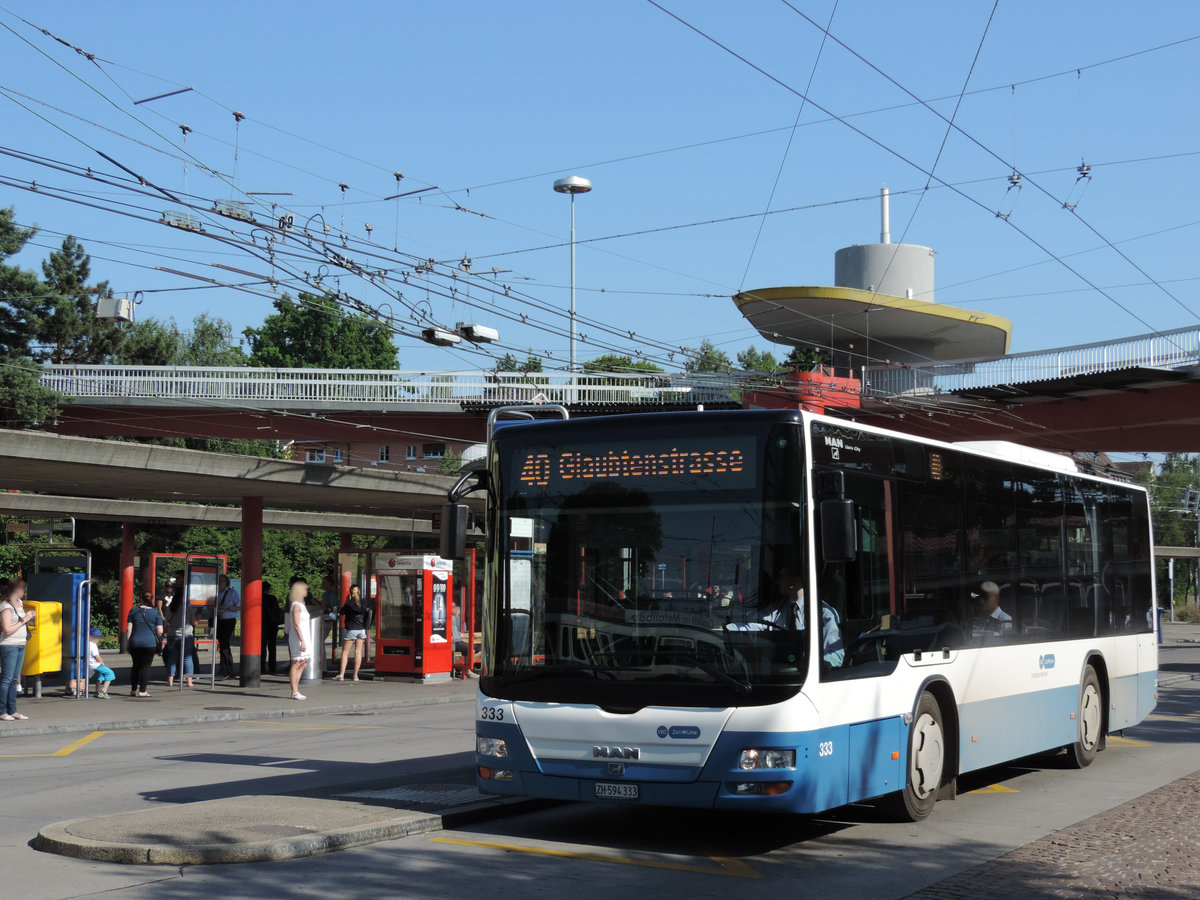 VBZ-Fahrschulwagen Nr. 4128 ex. 33 (Mercedes O405GTZ) am 28.1.2010 beim Bucheggplatz. Dieser Wagen ist einer von drei ''Überlebenden'' der 1. GTZ Serie. 33 von 36 GTZ wurden nach der Swisstrolley und Lightram Lieferung abgebrochen. Silvio Jenny