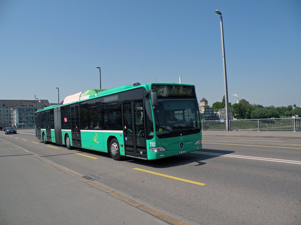 Mercedes Citaro mit der Betriebsnummer 712 auf der Linie 30 fährt über die Johannitterbrücke in Basel Richtung Bad. Bahnhof. Die Aufnahme stammt vom 22.04.2011.