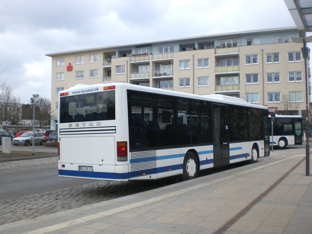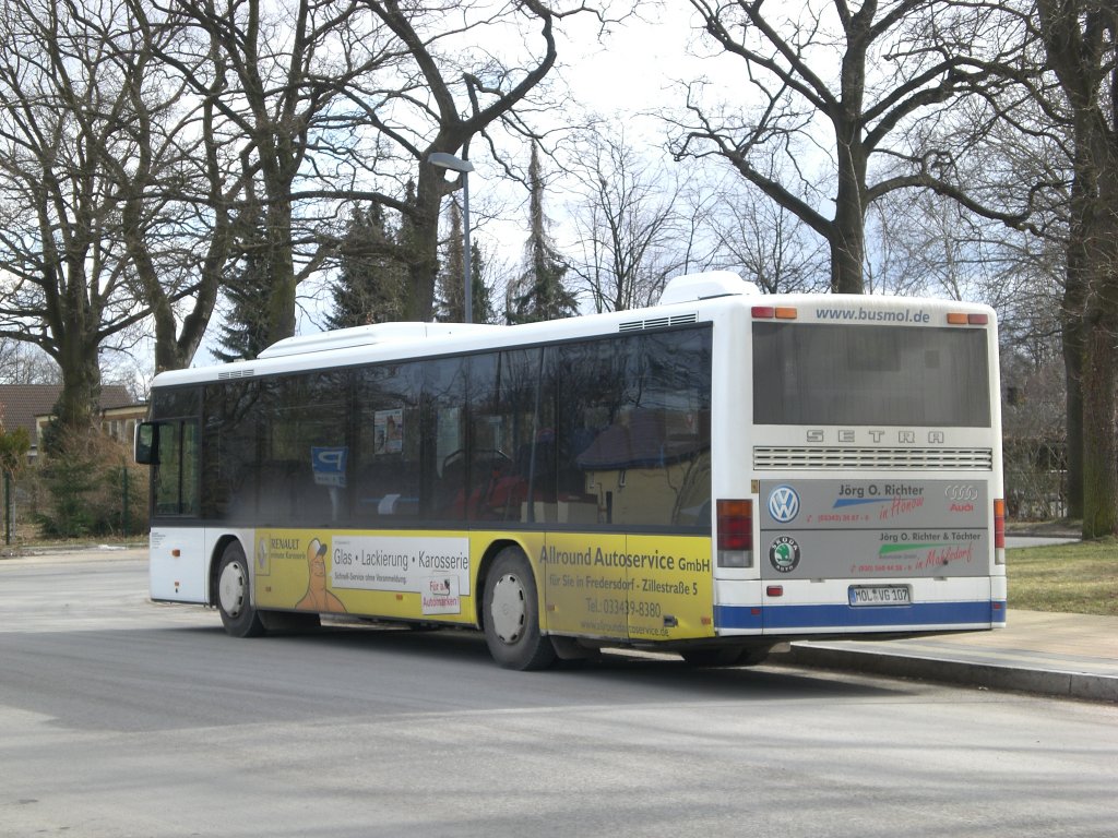 Setra S 300er-Serie NF auf der Linie 943 nach Neuenhagen Lindenstr/Einkaufzentrum am S-Bahnhof Hoppegarten.