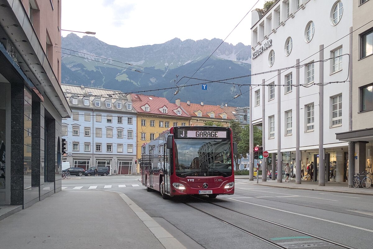 Mercedes-Benz Citaro 2. Generation der Innsbrucker Verkehrsbetriebe (Bus Nr. 667) als Einrücker in den Betriebshof in Innsbruck, Bürgerstraße. Aufgenommen 10.7.2025. stbtram