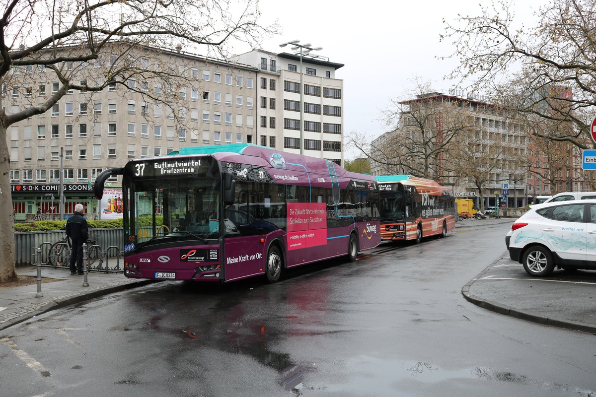 Am Haken: Solaris Urbino 12 electric der BVG in Berlin am 30.03.2019