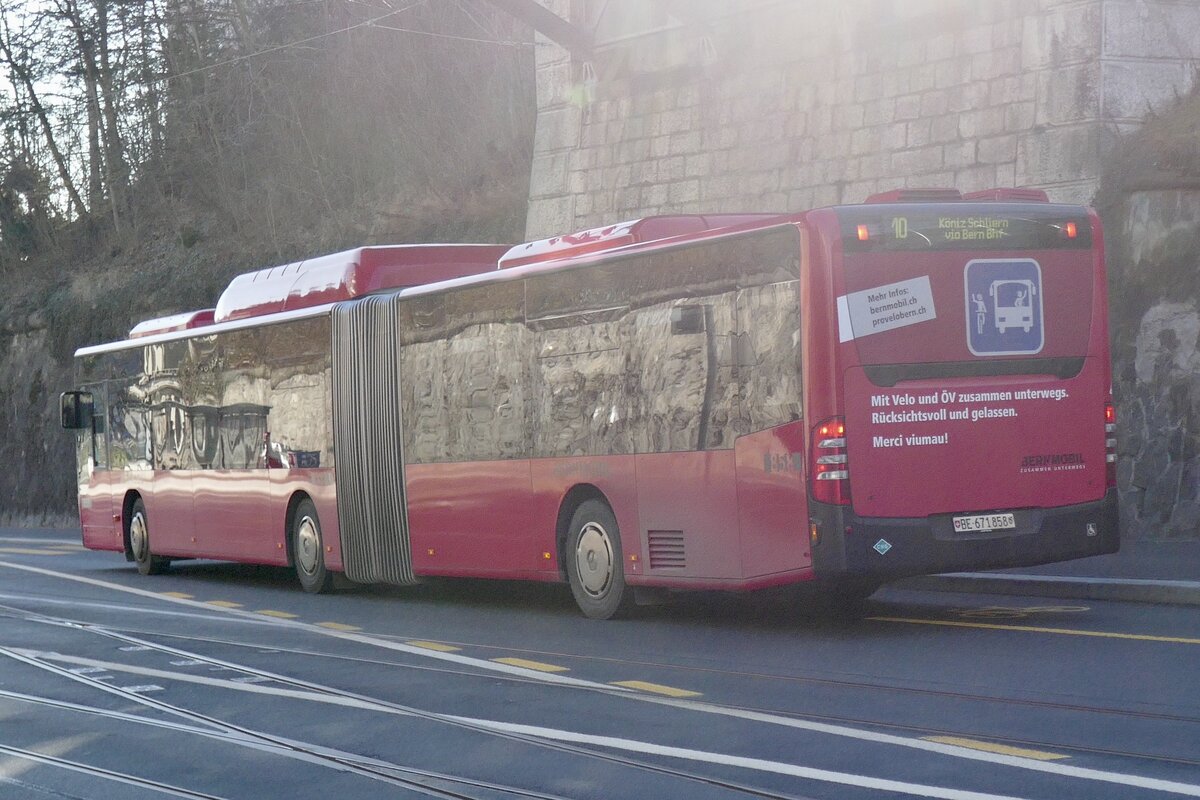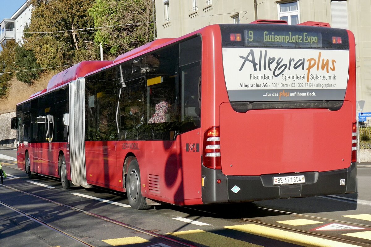Mercedes Citaro der BGU, auf der Linie 34, wartet an der Haltestelle beim Bahnhof Grenchen Nord und fährt dann als Dienstfahrt weiter. Die Aufnahme stammt vom 20.01.2022. Markus Wagner