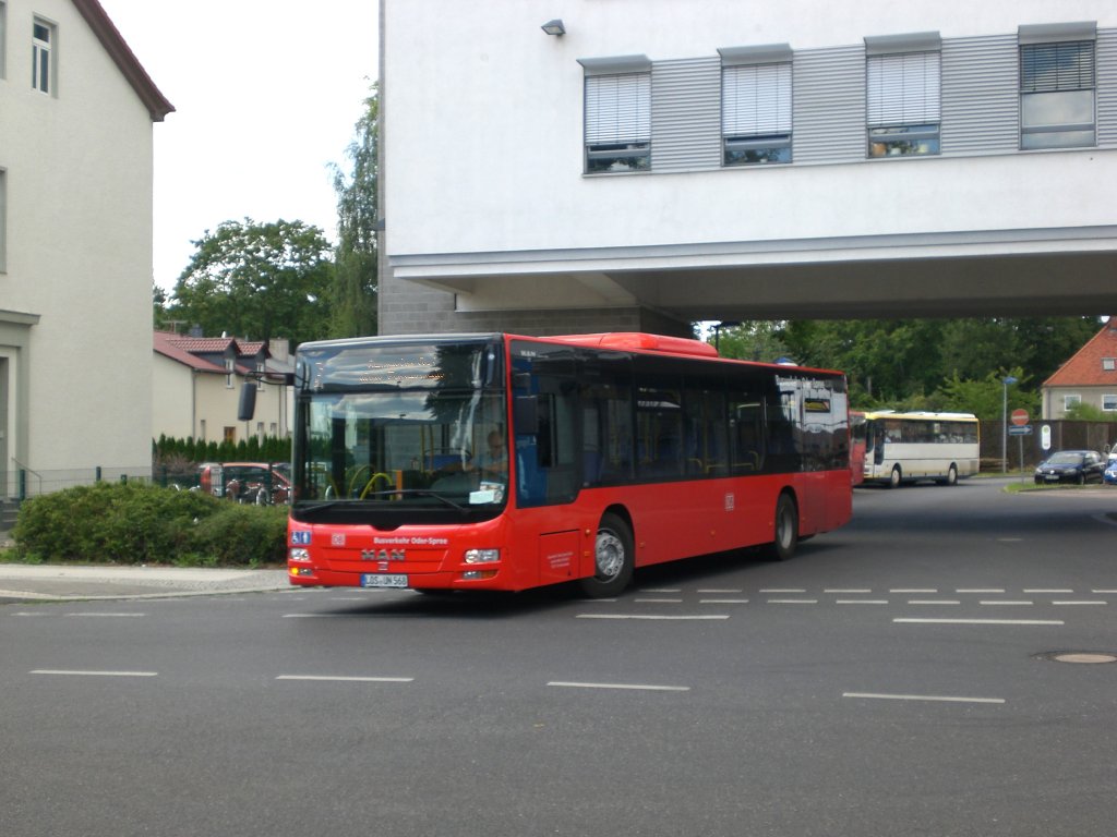Am 28.07.2009 ist der MAN Lions Regio (LOS-AD 528) der Busverkehr Oder-Spree GmbH auf der Linie 447 kurz vor dem Überqueren der hölzernen Zugbrücke an der Schleuse in Neubrück. Auf das Wetter konnte ich leider keine Rücksicht nehmen, denn in den Ferien gibt es auf dieser Linie nur Dienstags zwei Fahrtenpaare. Holger Wanntke