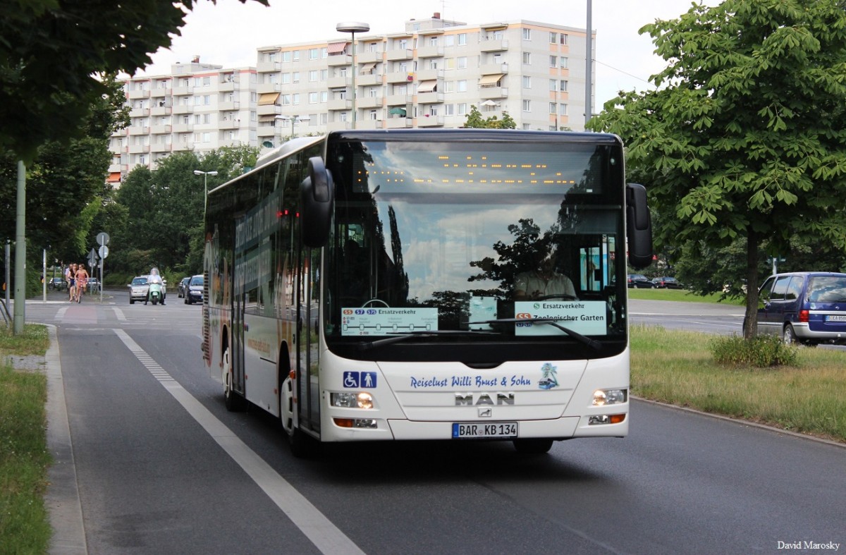 22.07.2014 ein MAN Lion`s City der Firma Brust kurz vor dem S Tiergarten auf dem Stadtbahn SEV in Berlin.