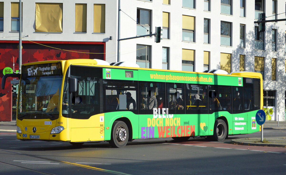 Berliner Verkehrsbetriebe mit einem MB CITARO (Typ MB Citaro C2 / BVG Typ MB EN20 Nr. 1128) als Linie 164 Richtung Flughafen BER Terminal 5 am 08.11.22 Berlin Adlershof. Lothar Stöckmann