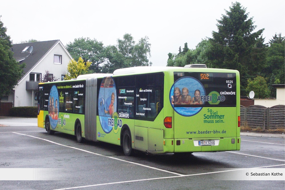 Die Werbung kam im Sommer 2011 an den Bus. Früher wurde für jedes Bad in Bremerhaven (Bad-1, 2, 3, Freibad und Weser-Strandbad) jeweils einzeln an einem Bus geworben, es gab eine Ausnahme, nämlich die, des Weser-Strand-Bades, für dies gab es keine Werbung. Mittlerweile, gibt es zwei Gelenkbusse, an denen für alle fünf Bäder geworben wird. Diesem Bus hier, steht übrigens in ein paar Monaten die Außerdienststellung und Ausmusterung bevor. Sebastian Kothe