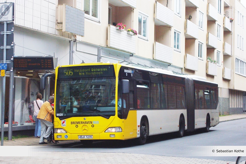 Hier traf ich bei einer normalen Sichtungstour im VGB-Netz auf einer, wie die "gleichaltrigen" Freaks es früher nannten, "Seltenheit", nämlich die, eines Viertürigen-Gelenkbusses (Außnahme: KOM 9823 dreitürig aber ebenfalls Seltenheit) auf einer der Hauptlinien 501/502/505/506/511 zu beobachten. Wie in diesem Falle, wurde der KOM 9920 (Baujahr 1999) von mir an der Haltestelle "Großen Kirche" in der Bremerhavener Innenstadt, in Fahrtrichtung "Süd" von mir auf der Linie 505 abgelichtet. Derzeit, fährt die Linie übrigens nicht mehr, wie dem Ziel des Busses zu entnehmen ist, bis nach "Hornbach", sondern bis zu "IKEA". Die Linie wurde vor zwei Jahren um eine Haltestelle verlängert. Dies erlebte der Wagen, aber nicht mehr mit, denn dieser wurde schon vor mehreren Jahren abgestellt und ausgemustert. Sebastian Kothe