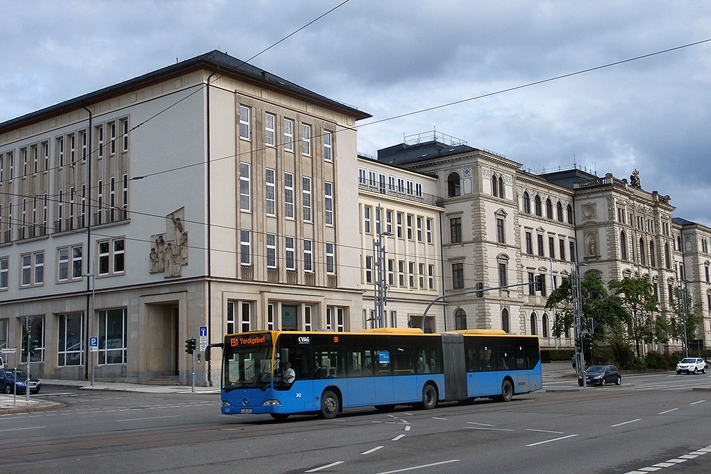 Stadtbus Chemnitz / CVAG Chemnitz: Mercedes-Benz Citaro G der Chemnitzer Verkehrs-AG (CVAG) - Wagen 241, aufgenommen im Juni 2016 in der Innenstadt von Chemnitz.