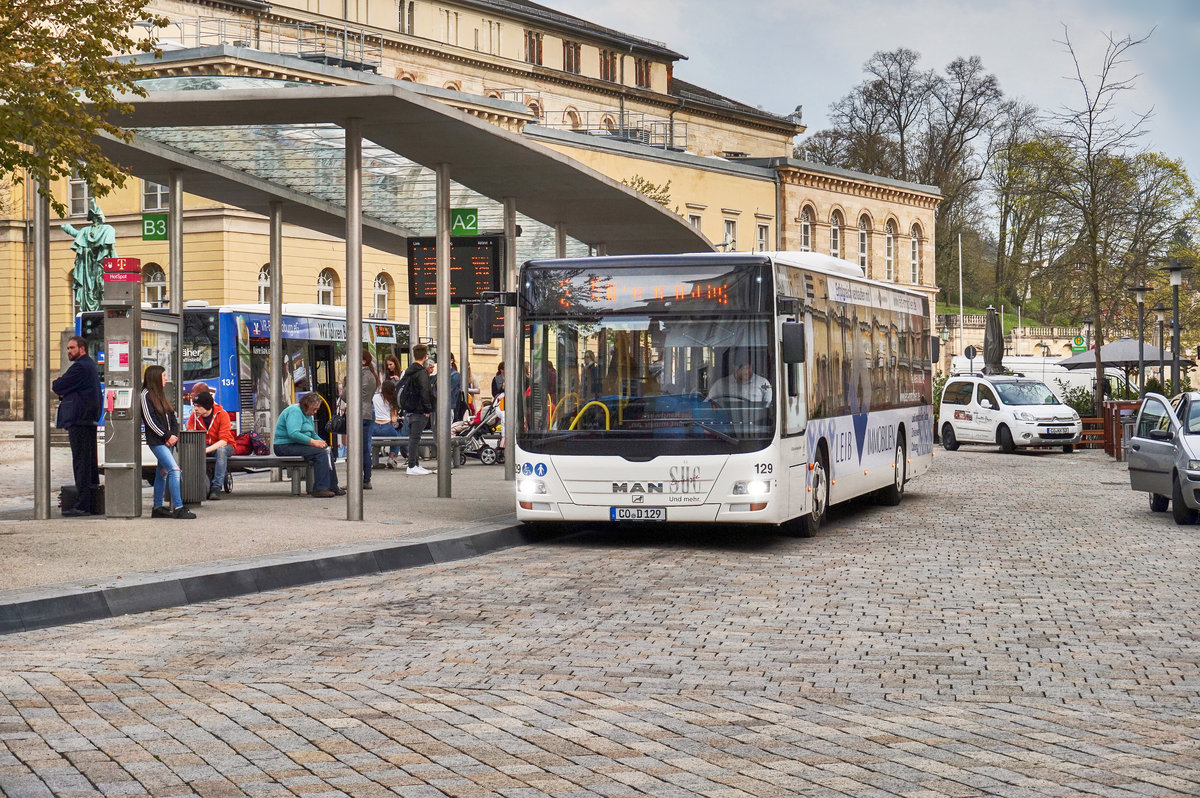 Unterwegs war der Bus auf der Linie 1 (Glend - Coburg Bahnhof ZOB - Theaterplatz -