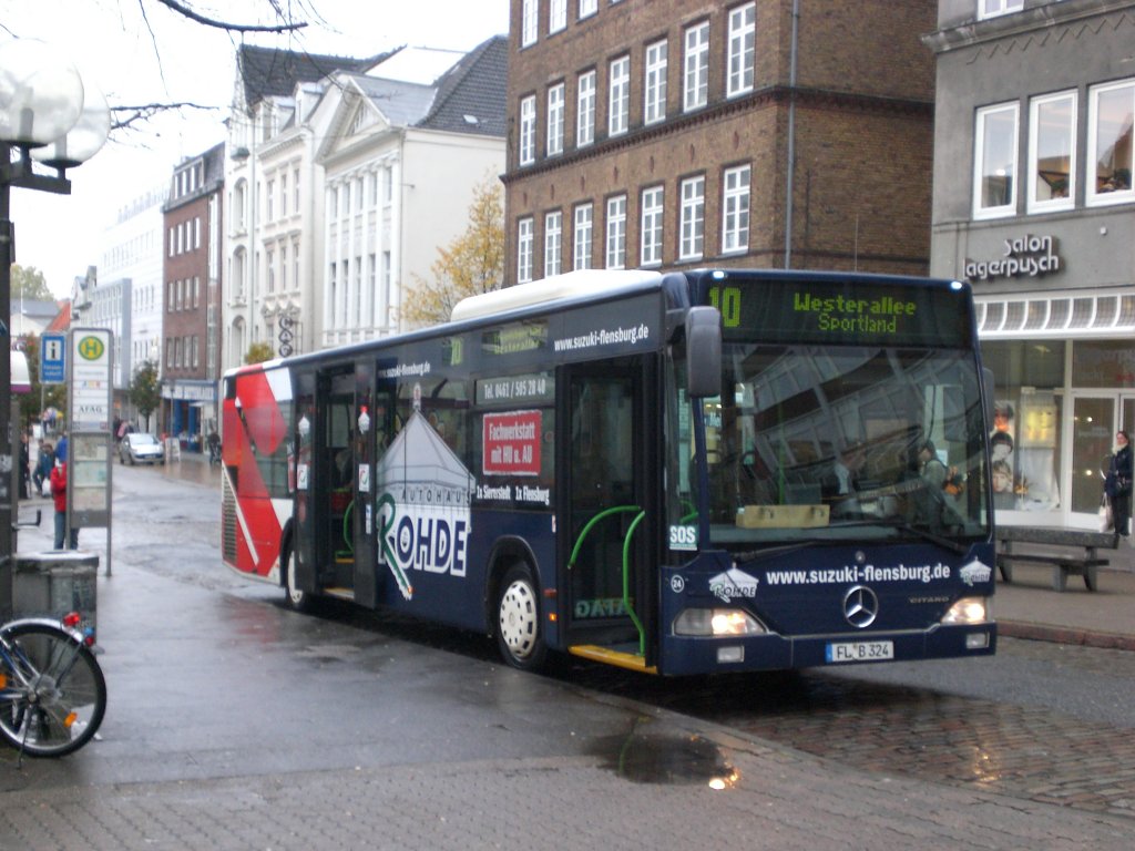 Mercedes-Benz O 405 N (Niederflur-Stadtversion) auf der Linie 10 nach Twedter Plack nahe der Haltestelle Südermarkt.