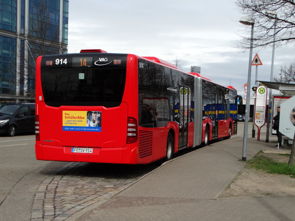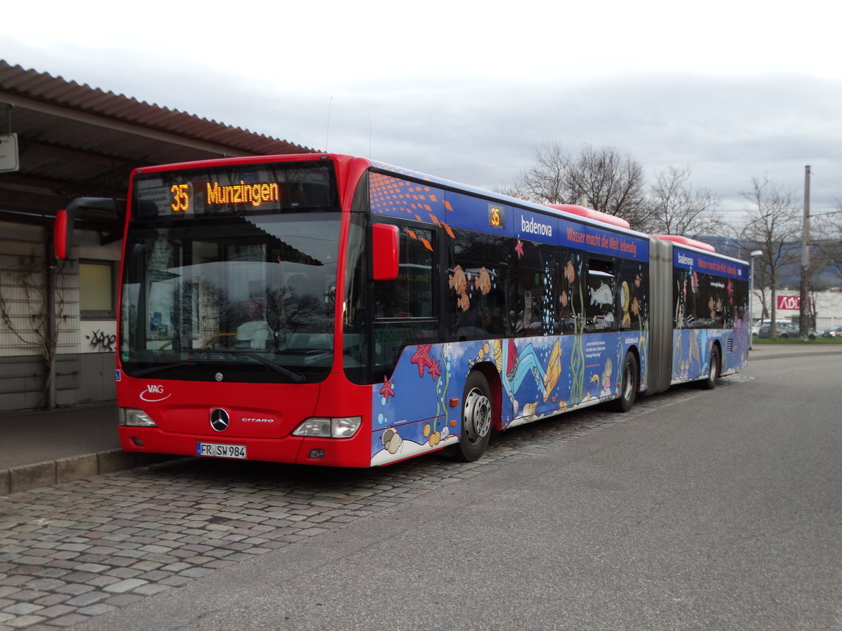 Freiburger VAG Mercedes Benz Citaro 1 Facelift G Wagen 984 am 20.03.17 an der Haltestelle Haid