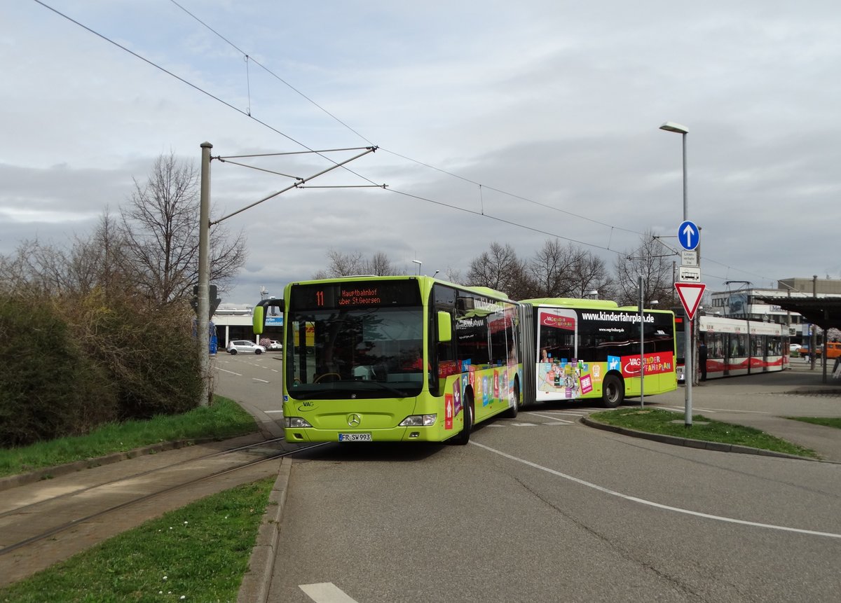 Freiburger VAG Mercedes Benz Citaro 1 Facelift G Wagen 993 am 21.03.17 in Haid