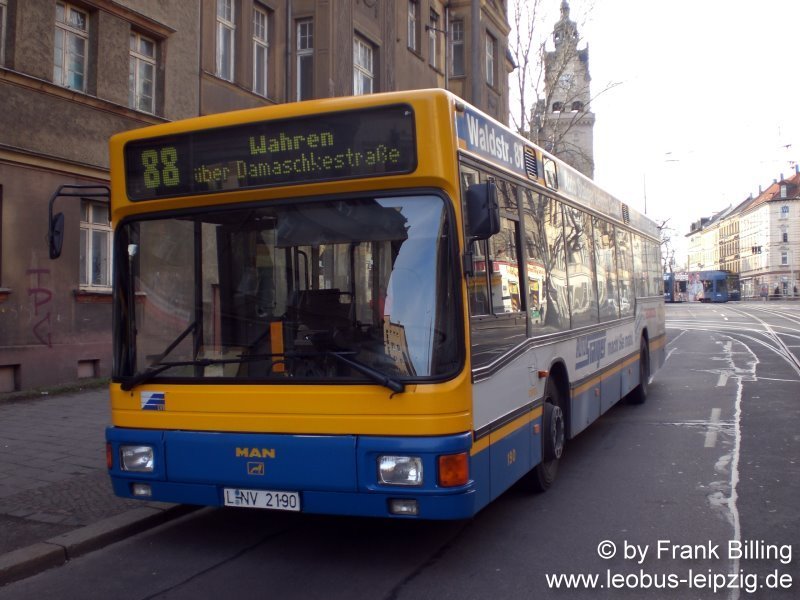 24.03.2008, Wagen 190, als Linie 87, Endhaltestelle "Wiederitzsch-Nord, Autohaus"