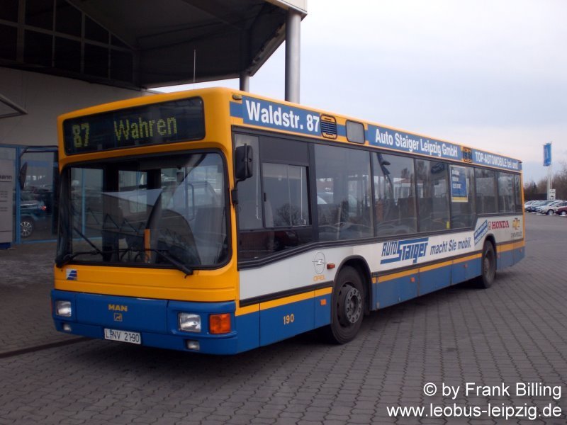 24.03.2008, Wagen 190, als Linie 87, Endhaltestelle  Wiederitzsch-Nord, Autohaus