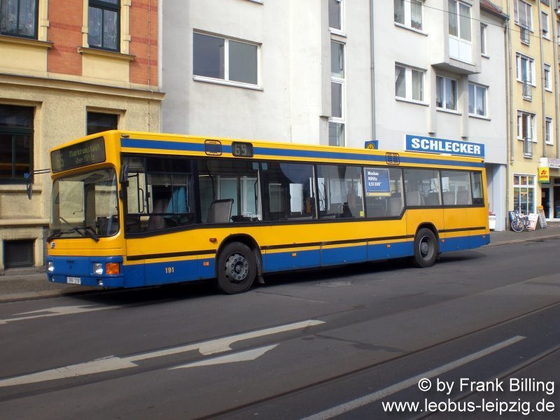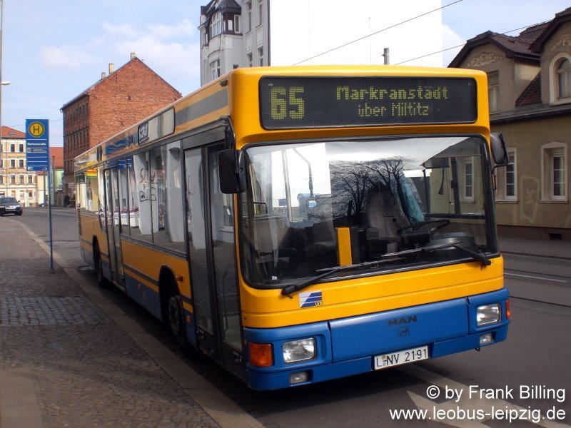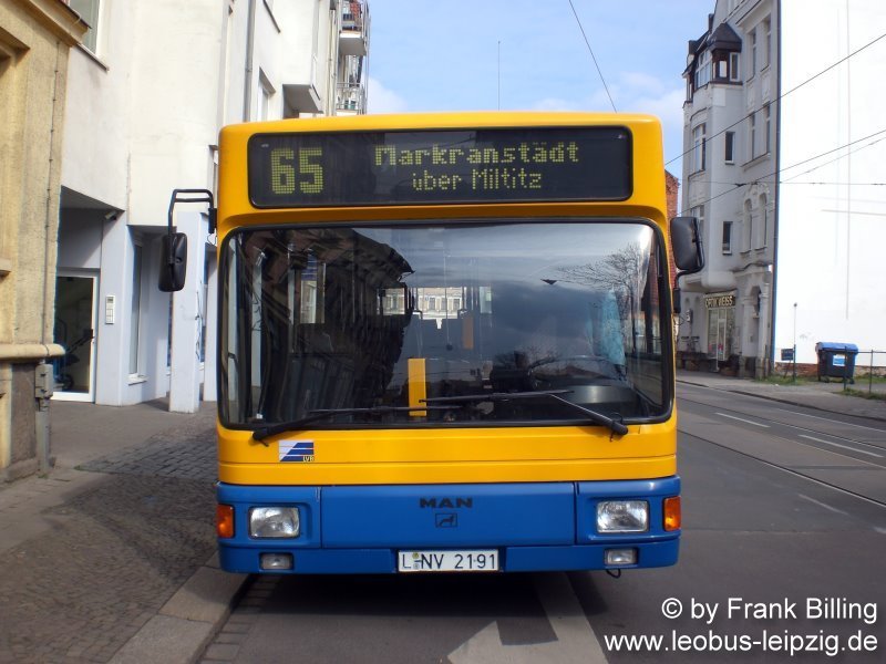 27.03.2008, Wagen 191, als Linie 65, mit Zwischenstopp an Haltestelle  Huttenstraße  in Großzschocher.