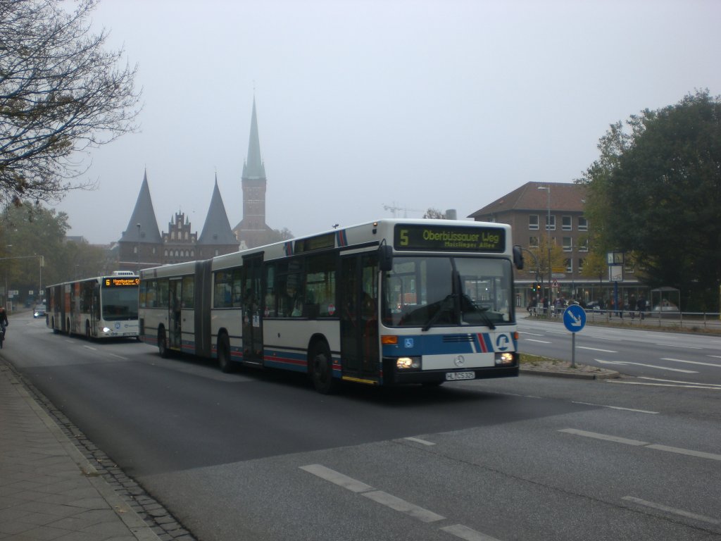Mercedes-Benz O 405 N (Niederflur-Stadtversion) auf der Linie 5 nach Oberbüssauer Weg nahe der Haltestelle Holstentorplatz.