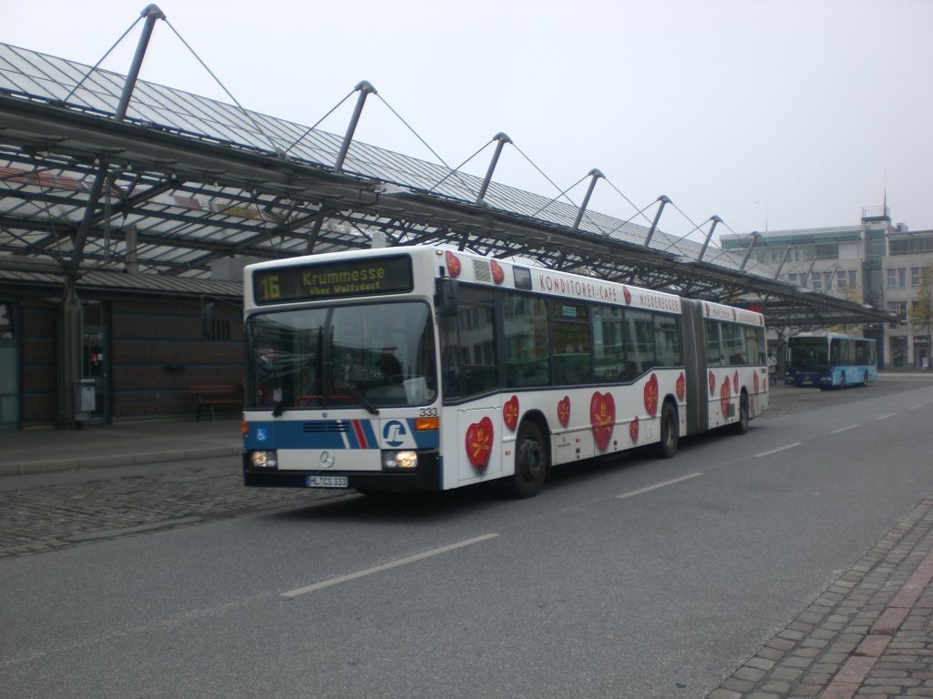 Mercedes-Benz O 405 N (Niederflur-Stadtversion) auf der Linie 16 nach Krummesse am ZOB/Hauptbahnhof.