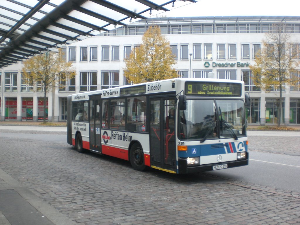 Mercedes-Benz O 405 N (Niederflur-Stadtversion) auf der Linie 19 nach Bad Schwartau/ZOB am ZOB/Hauptbahnhof.