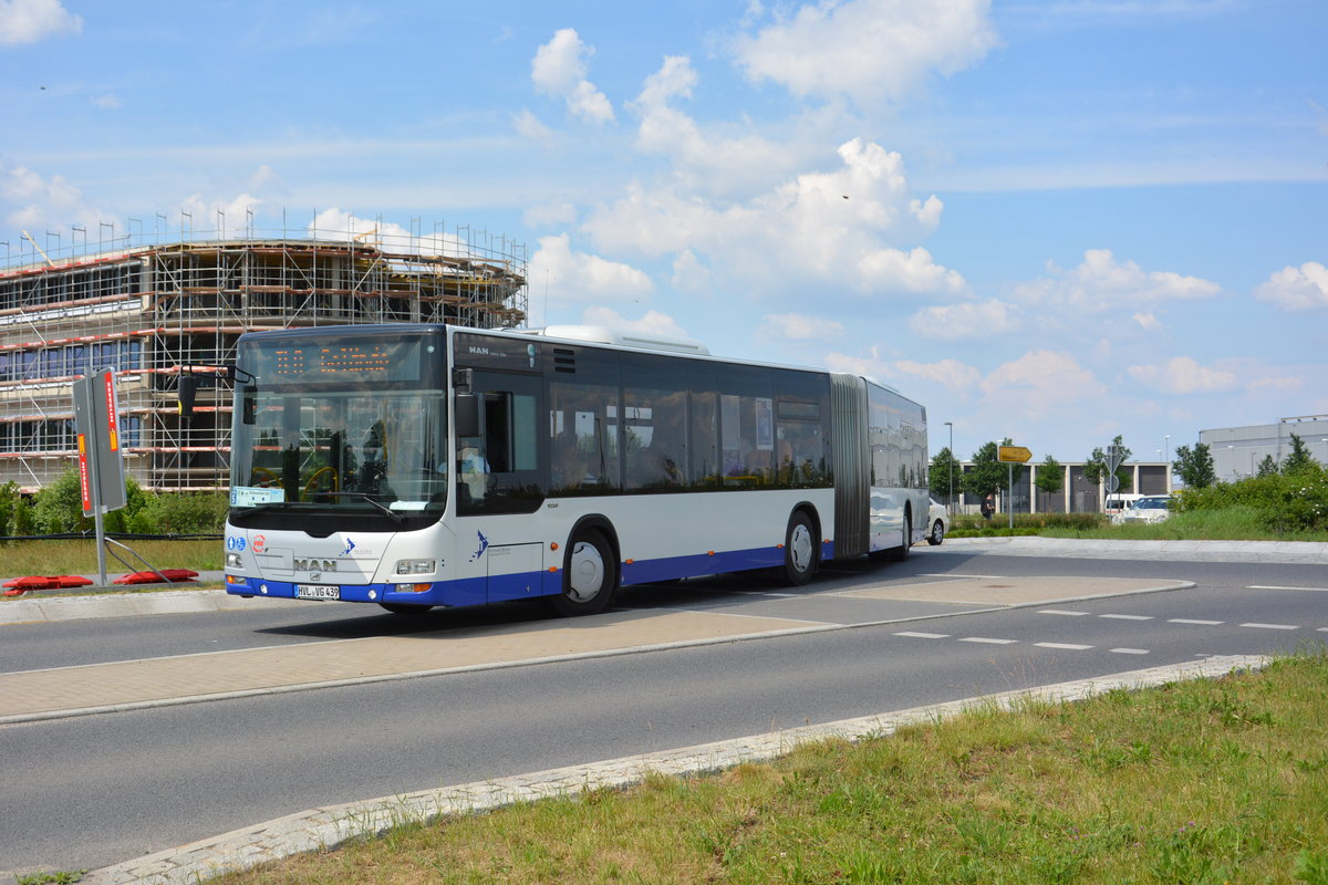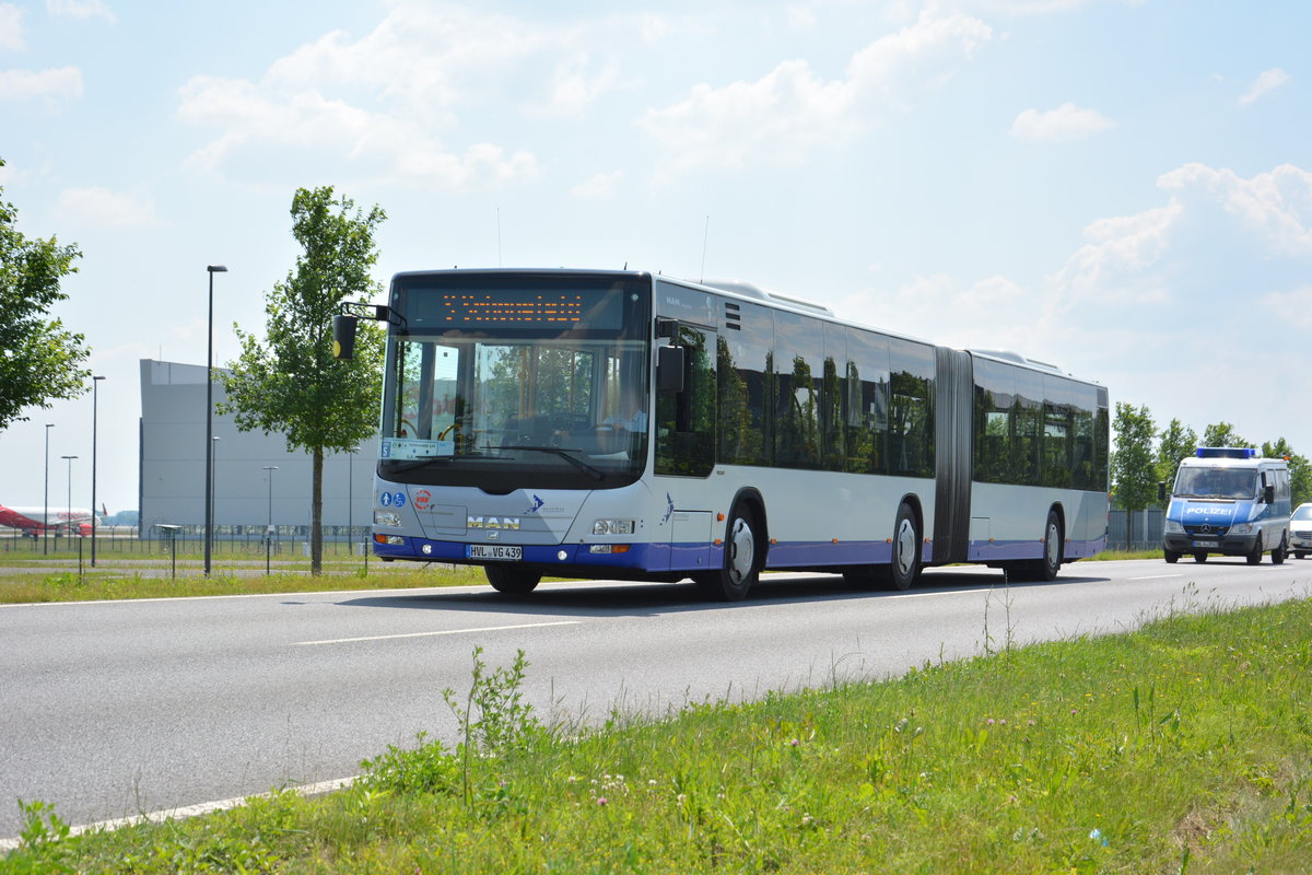 Am 04.06.2016 fährt HVL-VG 439 für die ILA auf der Shuttle-Linie S zwischen ILA Gelände und Bahnhof Schönefeld. Aufgenommen wurde ein MAN Lion's City G der Havelbus. Marcel W.