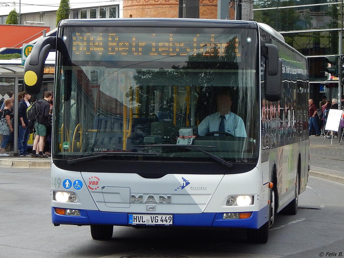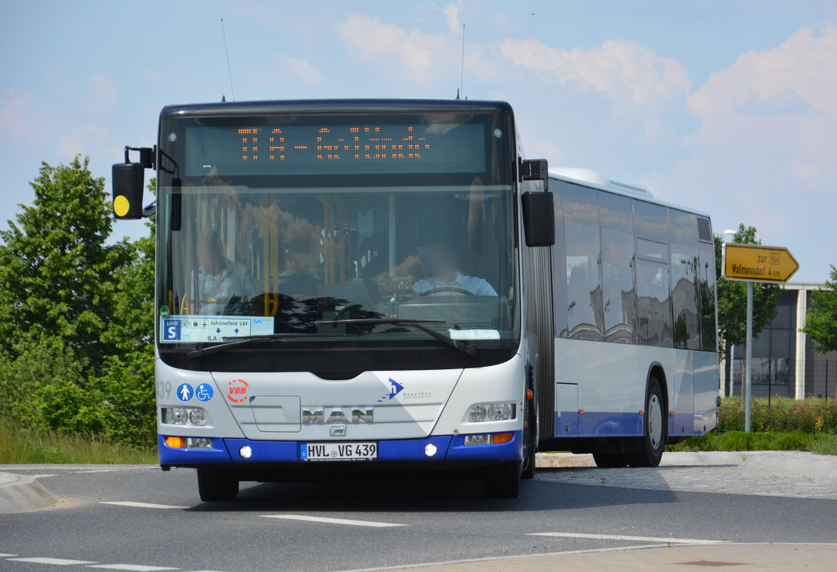 Am 04.06.2016 fährt HVL-VG 439 für die ILA auf der Shuttle-Linie S zwischen ILA Gelände und Bahnhof Schönefeld. Aufgenommen wurde ein MAN Lion's City G der Havelbus.