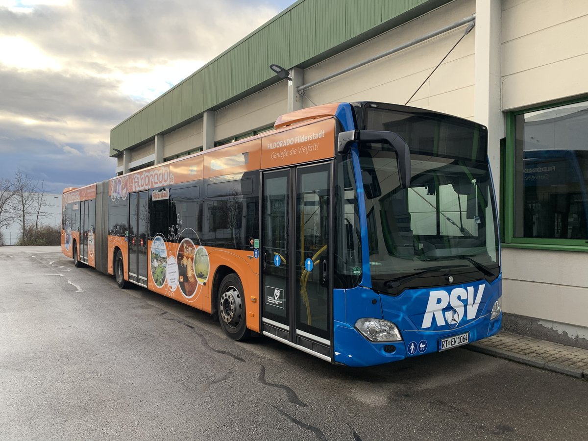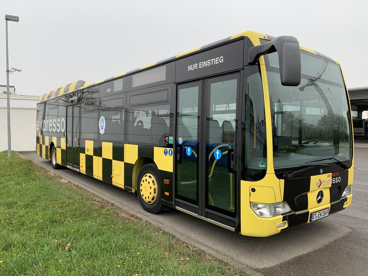 Ein DB-Citaro aus Reutlingen mit Expresso-Beschriftung macht Pause am Flughafen, Stuttgart und fährt als Schnellbus weiter nach Reutlingen. Manfred Fangerow