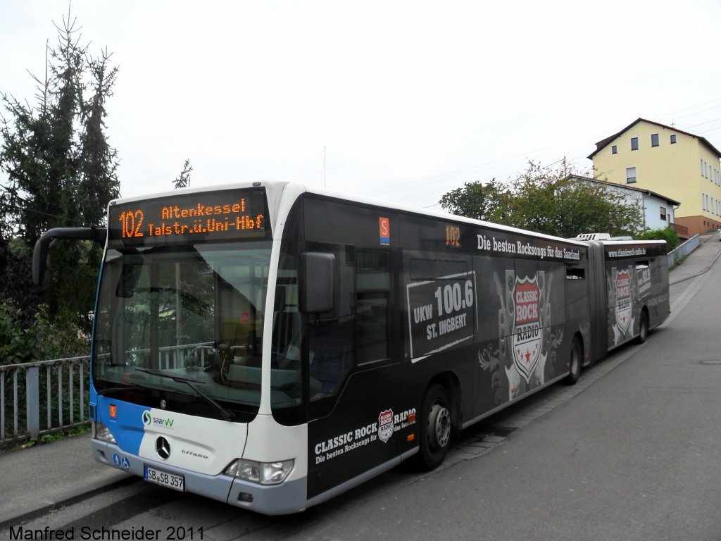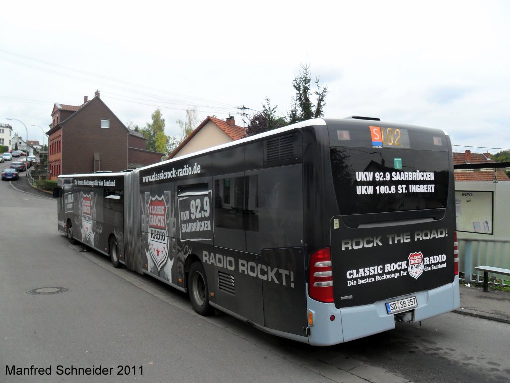Hier ist ein MAN Gelenkbus von Saarbahn und Bus zu sehen. Das Bild habe ich am 22.09.2011 auf dem Gelände der Universität des Saarlandes gemacht. Manfred Schneider
