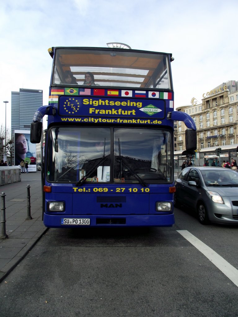 Stadtrundfahrt "SKYLINE-Tour" kurvt durch Frankfurt; 120821