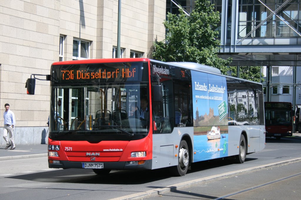 Rheinbahn 7571 (D NM 7571) mit Werbung für Irlands Lakelands.