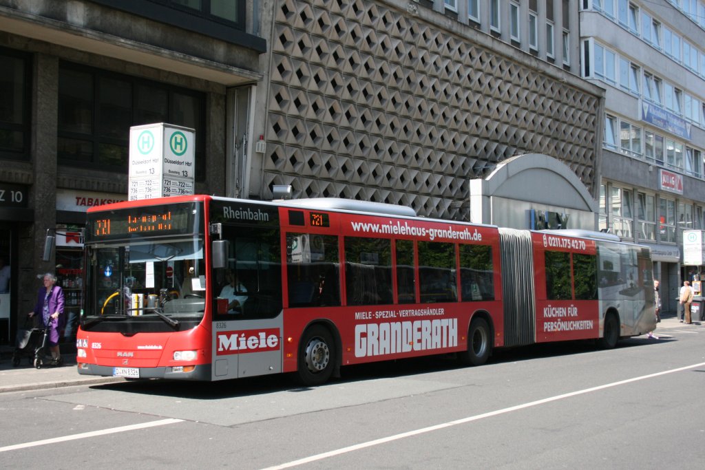 Rheinbahn 8326 (D XN 8326) macht Werbung für Granderath Küchen. Düsseldorf HBF, 2.6.2010