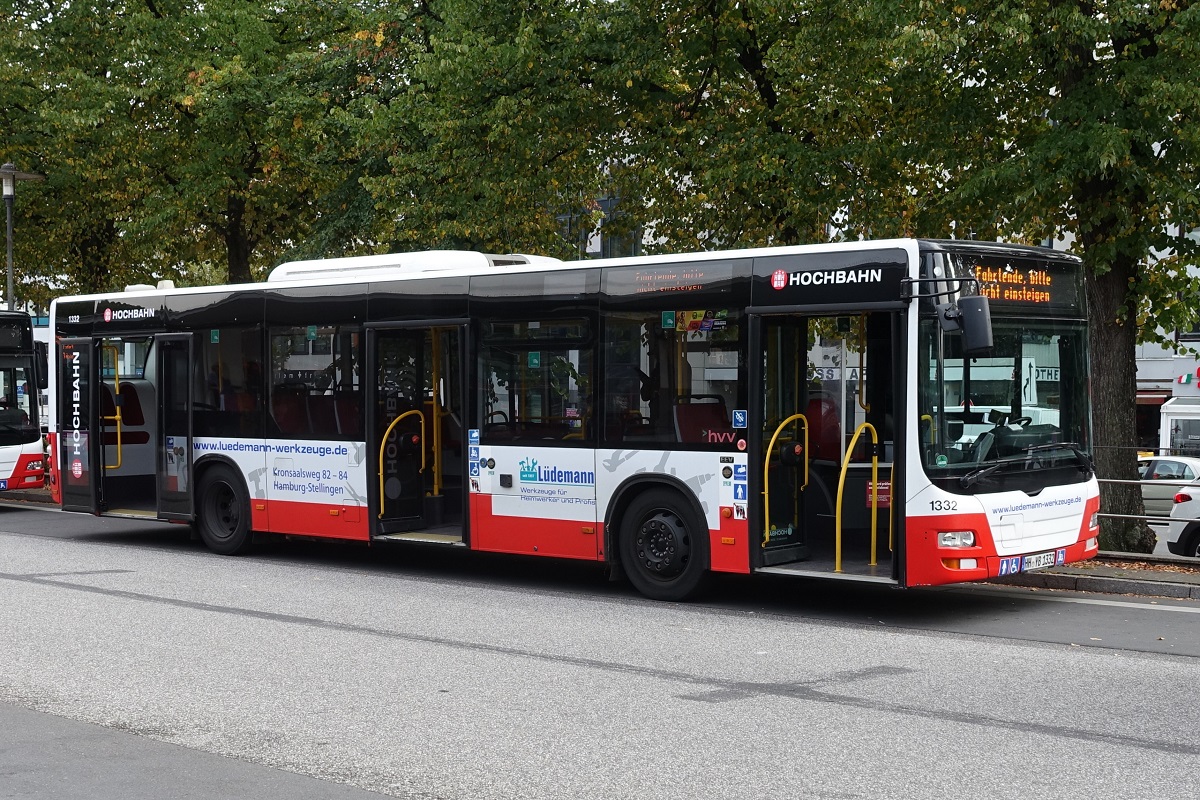 HHA 1332 (HH-YB 1332) am 10.9.2025, U-Wandsbek Markt, MAN A37 Lion´s City NL 293, 3-türig, EZ 12.2013 /