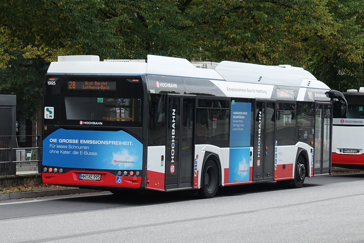 HHA 1995 (HH-XE 995) am 10.9.2025, U-Wandsbek Markt, Solaris New Urbino Elektric. 12, 3-t, 3-türig, EZ 11.2019 /
