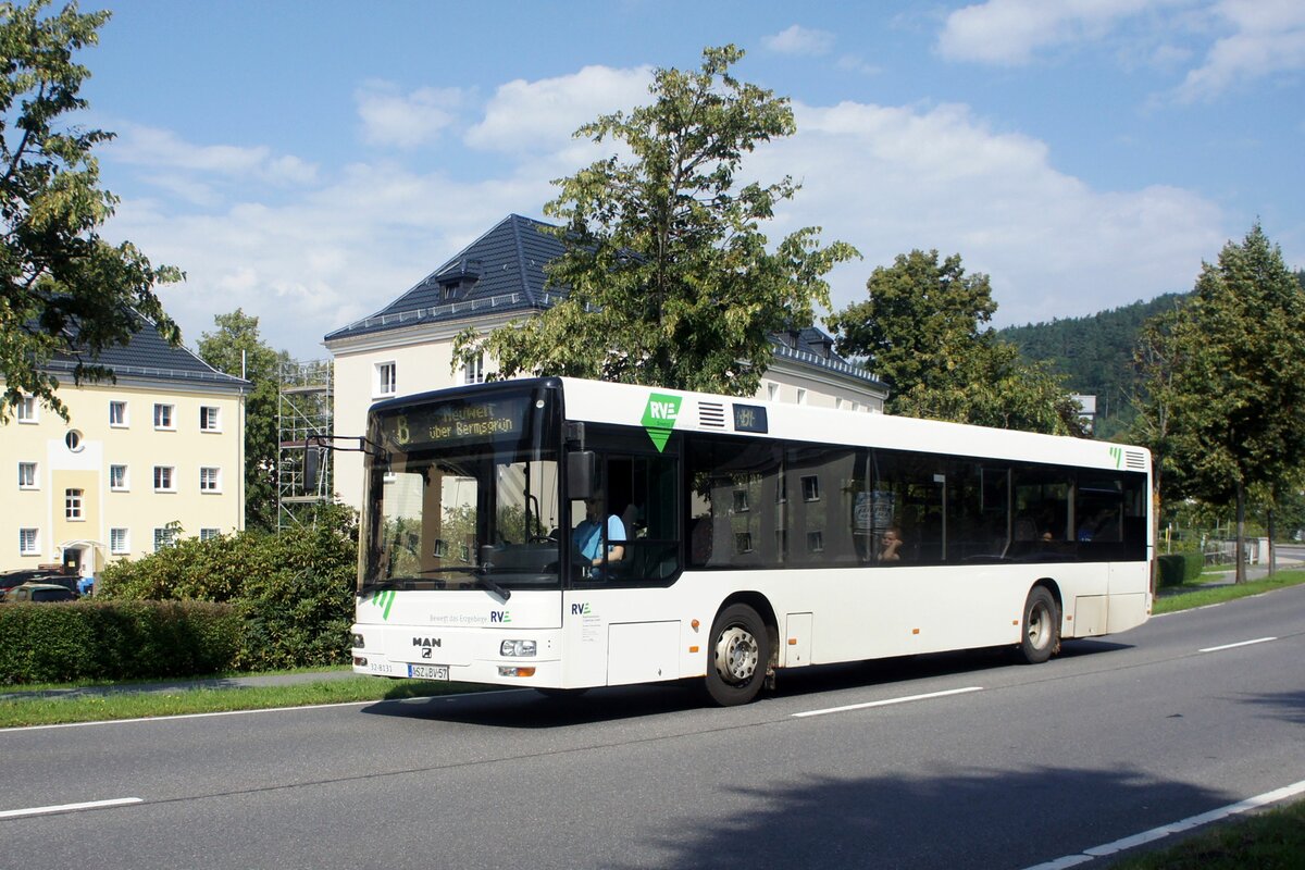 Bus Schwarzenberg / Bus Erzgebirge: MAN NL (ASZ-BV 57) der RVE (Regionalverkehr Erzgebirge GmbH), aufgenommen im August 2023 im Stadtgebiet von Schwarzenberg / Erzgebirge.