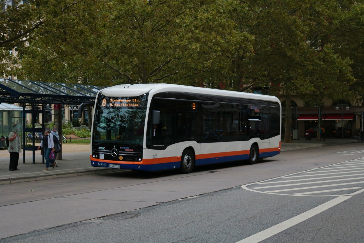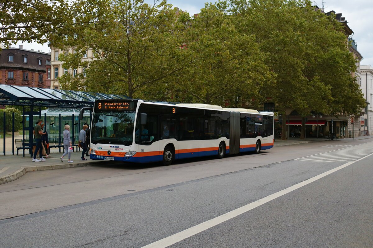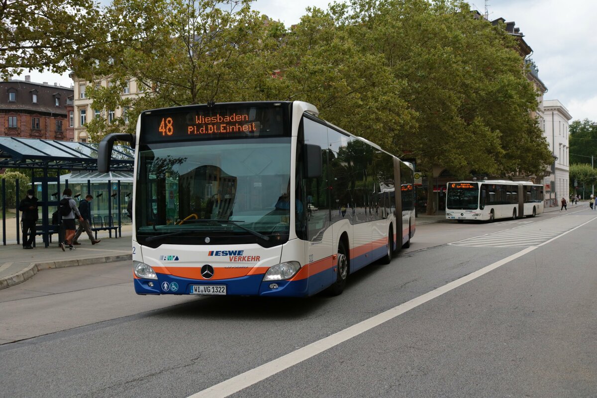 ESWE Verkehr Mercedes Benz Citaro 1 Facelift Wagen 308 am 11.12.21 in Wiesbaden Hbf