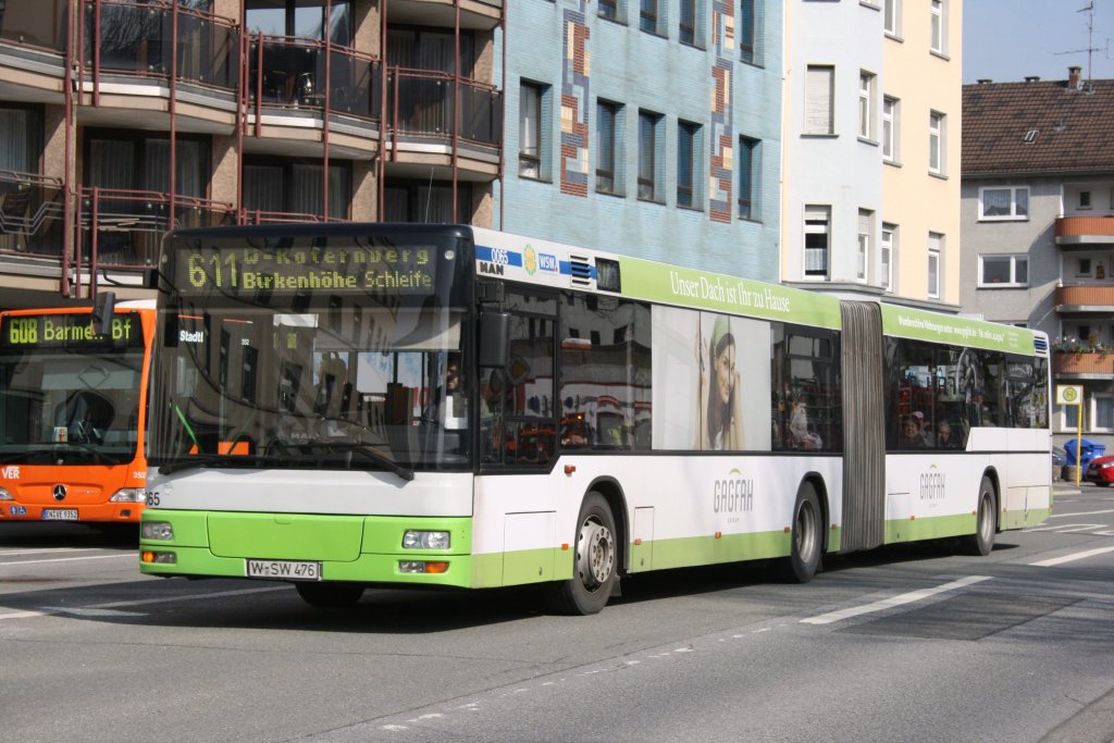 WSW 0967 (W SW 2967) am Bahnhof Barmen mit der Linie 611 nach W-Katternberg. 17.3.2010.