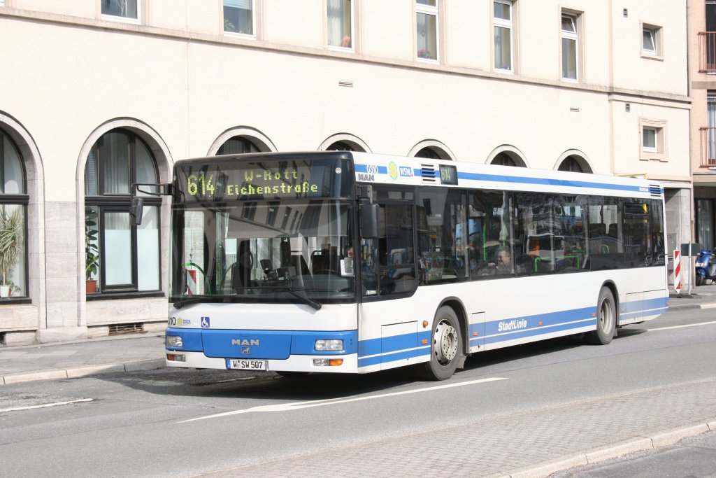 WSW 0310 (W SW 507) am Bahnhof Barmen mit der Linie 614 nach W-Rott. 17.3.2010
