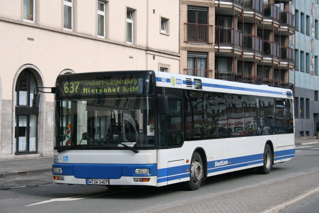 WSW 0407 (W SW 1407) am Bahnhof Barmen mit der Linie 637 nach Velbert-Langenberg. 17.3.2010
