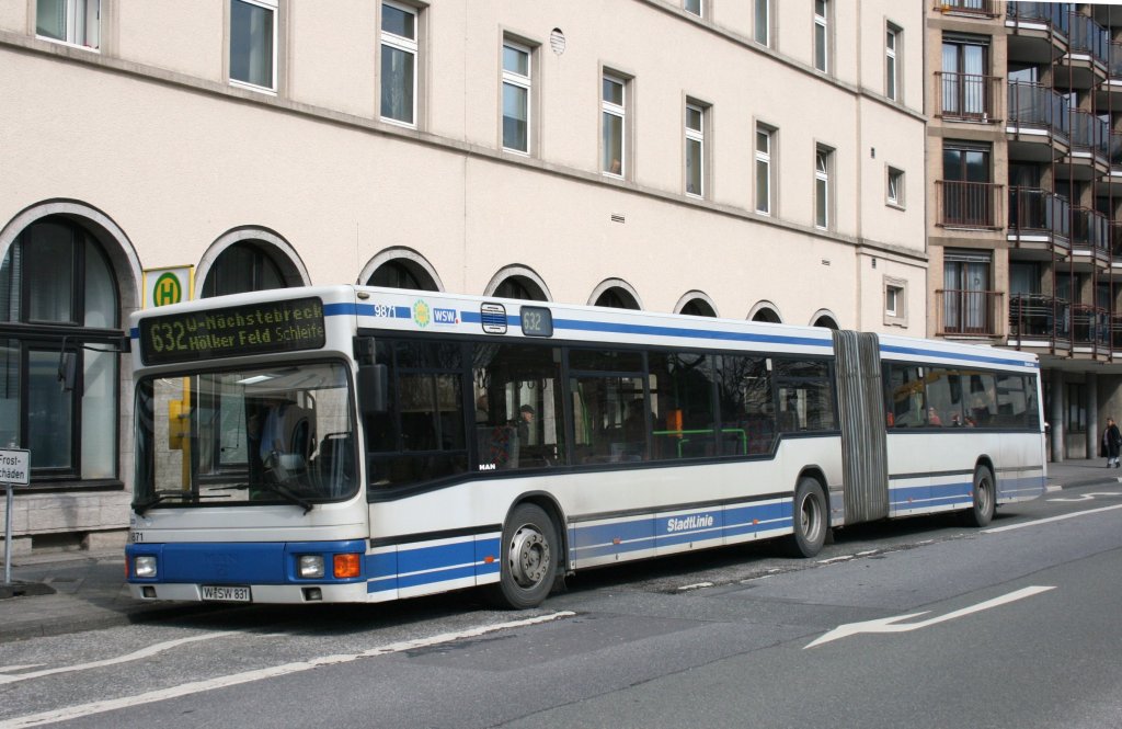 WSW 9871 (W SW 831) am Bahnhof Barmen mit der Linie 632 nach W-Nächstebreck. 17.3.2010