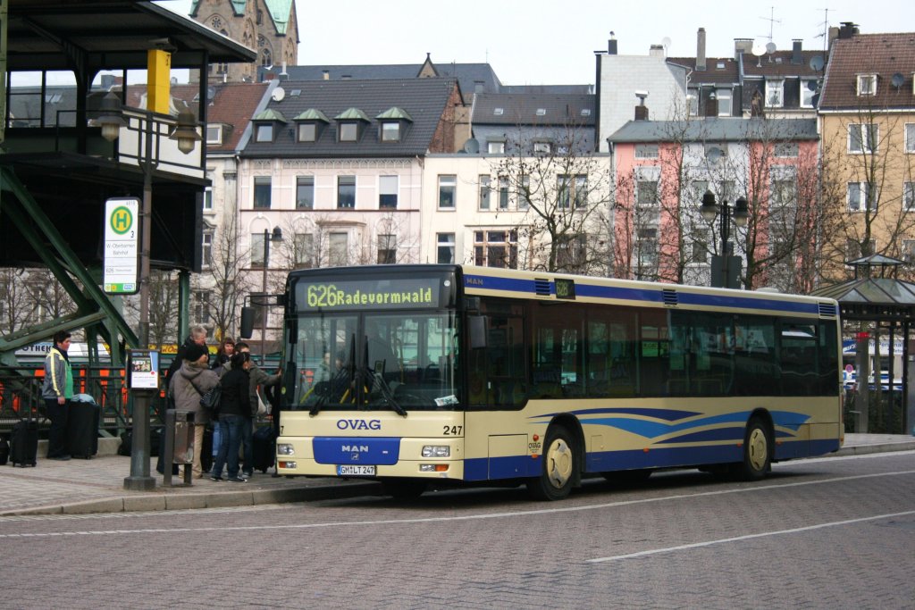 OVAG 247 (GM LT 247) mit der Linie 626 nach Radevormwald am Bahnhof Oberbarmen. 17.3.2010