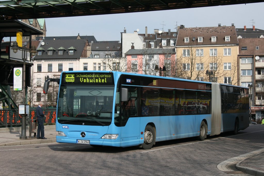 WSW 0963 (W SW 2963) mit dem Schwebebahn Express am Bahnhof Oberbarmen.