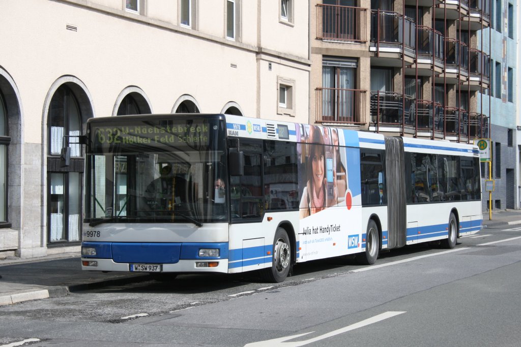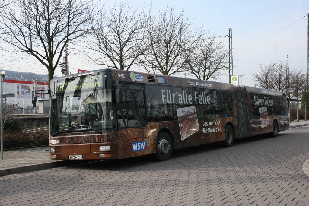 WSW 9962 (W SW 874) mit Werbung für das Bären Ticket. Aufgenommen am Bahnhof Oberbarmen, 17.3.2010.