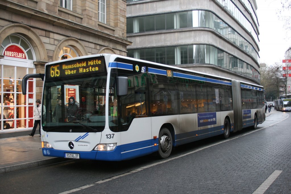 SW Remscheidt 137 (RS VL 37) am Wall Museum mit der Linie 615 nach Remscheidt Markt.