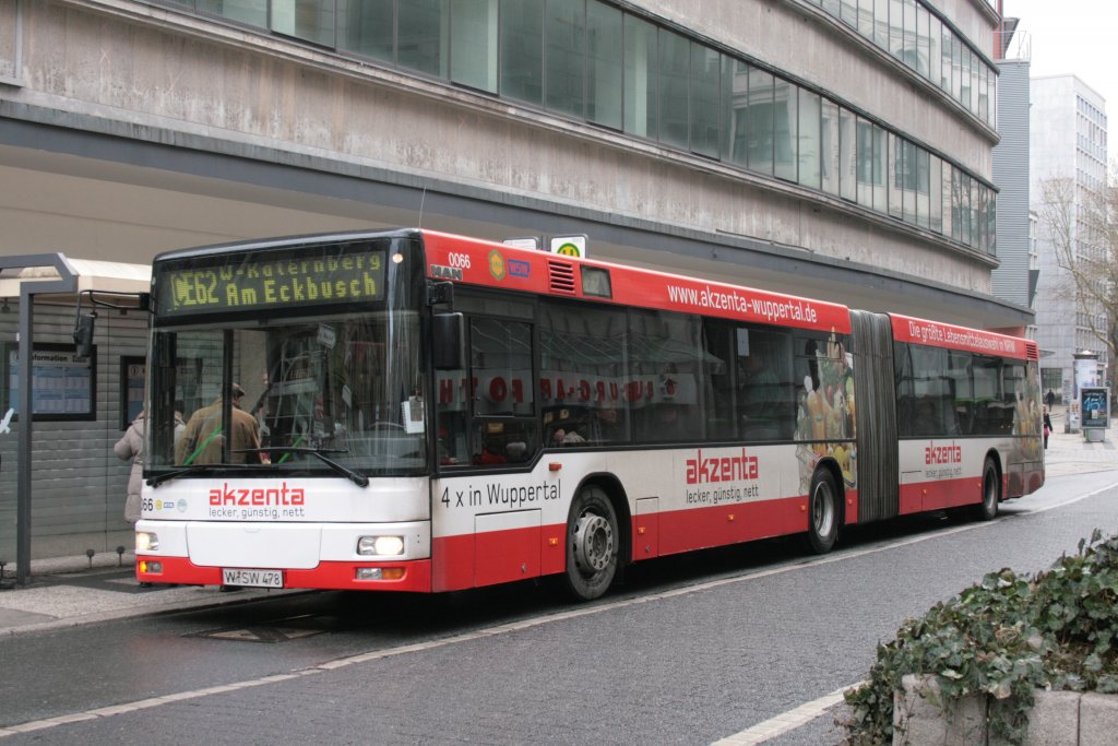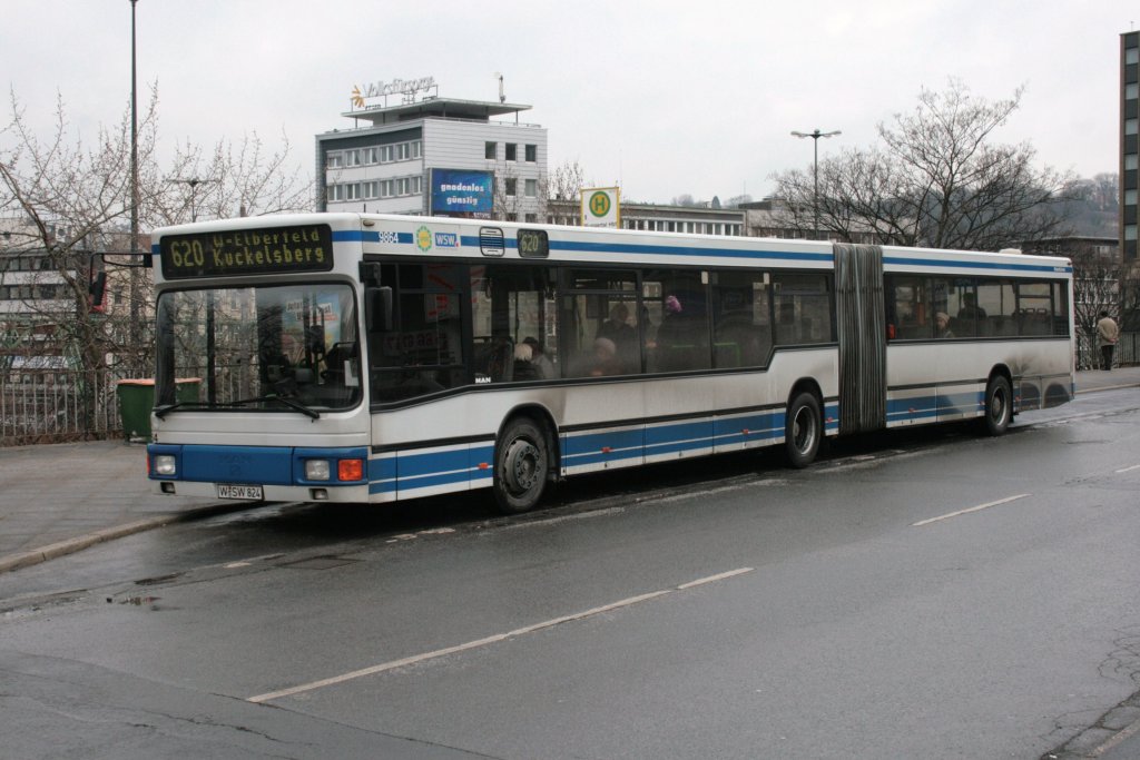 WSW 9864 (W SW 824) mit der Linie 620 am HBF Wuppertal Haupteingang. 13.3.2010
