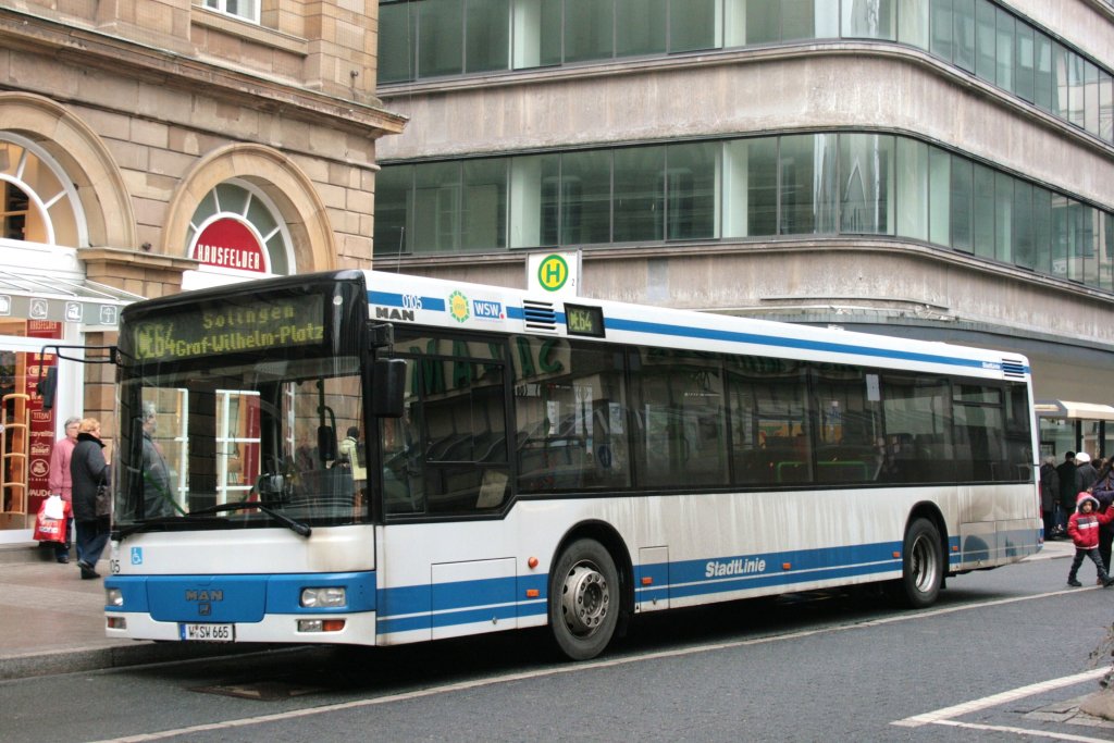 WSW 0967 (W SW 2967) am Wall Museum mit der Linie 615 nach Remscheidt am 13.3.2010.