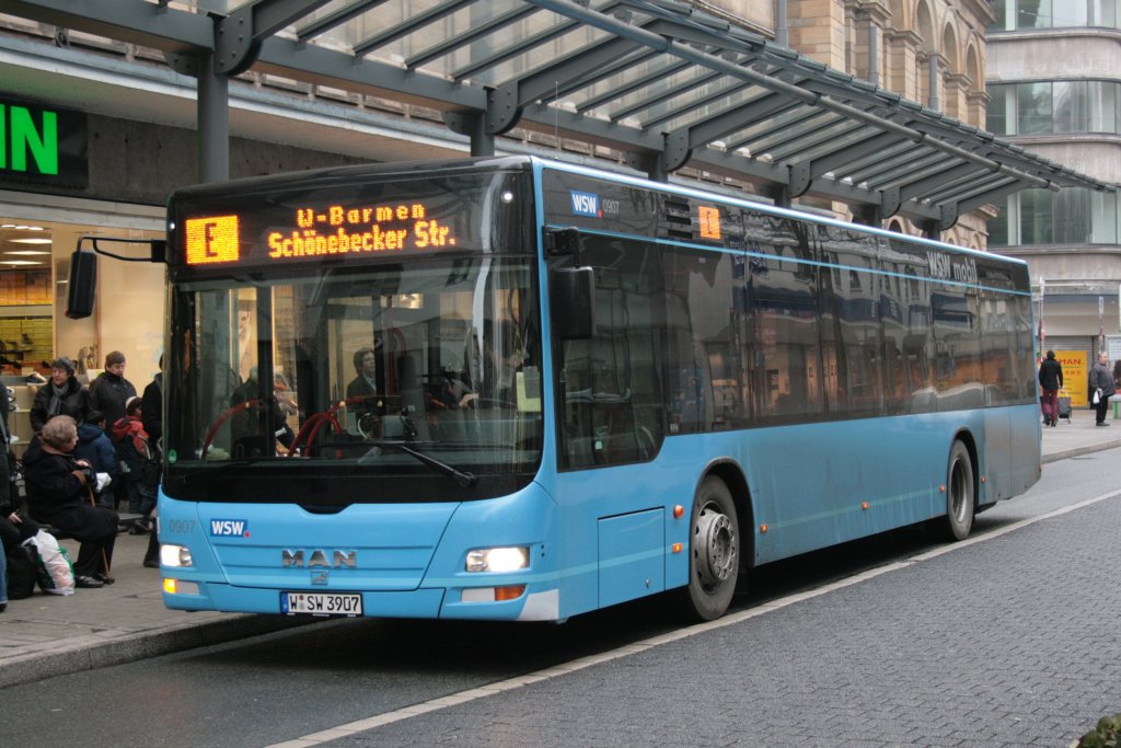 WSW 0907 (W SW 3907) mit dem E-Bus nach Wuppertal Barmen.